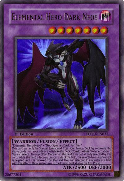 ‘Elemental HERO Neos’ + ‘Neo-Spacian Dark Panther’Must first be Special Summoned (from your Extra Deck) by shuffling the above cards you control into the Deck. (You do not use ‘Polymerization’.) If this card is not already targeting a monster with its effect: You can target 1 face-up Effect Monster on the field; while you control this face-up card, that target’s effect on the field is negated. During the End Phase: Shuffle this card into the Extra Deck.