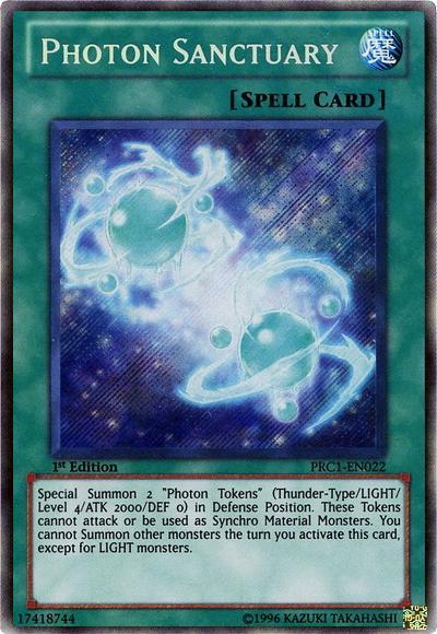 Special Summon 2 ‘Photon Tokens’ (Thunder-Type/LIGHT/Level 4/ATK 2000/DEF 0) in Defense Position. These Tokens cannot attack or be used as Synchro Material Monsters. You cannot Summon other monsters the turn you activate this card, except for LIGHT monsters.