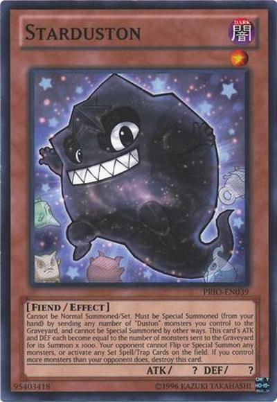 Cannot be Normal Summoned/Set. Must be Special Summoned (from your hand) by sending any number of ‘Duston’ monsters you control to the Graveyard, and cannot be Special Summoned by other ways. This card’s ATK and DEF each become equal to the number of monsters sent to the Graveyard for its Summon x 1000. Your opponent cannot Flip or Special Summon any monsters, or activate any Set Spell/Trap Cards on the field. If you control more monsters than your opponent does, destroy this card.