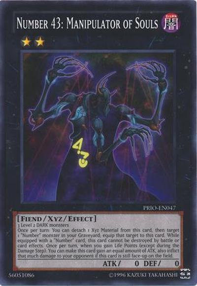 3 Level 2 DARK monstersOnce per turn: You can detach 1 Xyz Material from this card, then target 1 ‘Number’ monster in your Graveyard; equip that target to this card. While equipped with a ‘Number’ card, this card cannot be destroyed by battle or card effects. Once per turn, when you gain LP (except during the Damage Step): You can make this card gain an equal amount of ATK, also inflict that much damage to your opponent if this card is still face-up on the field.