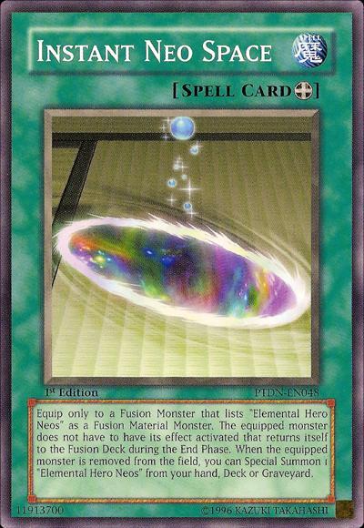 Equip only to a Fusion Monster that lists ‘Elemental HERO Neos’ as material. It does not have to activate its effect during the End Phase to shuffle itself into the Extra Deck. If the equipped monster leaves the field: You can Special Summon 1 ‘Elemental HERO Neos’ from your hand, Deck, or GY.