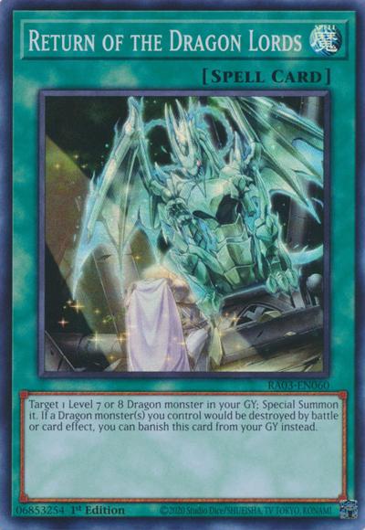 Target 1 Level 7 or 8 Dragon monster in your GY; Special Summon it. If a Dragon monster(s) you control would be destroyed by battle or card effect, you can banish this card from your GY instead.