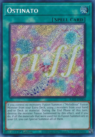 If you control no monsters: Fusion Summon 1 ‘Melodious’ Fusion Monster from your Extra Deck, using 2 monsters from your hand and/or Deck as Fusion Material. During the End Phase of this turn, destroy the monster Fusion Summoned by this effect, and if you do, if all the Fusion Materials that were used for its Fusion Summon are in your GY, you can Special Summon all of them.
