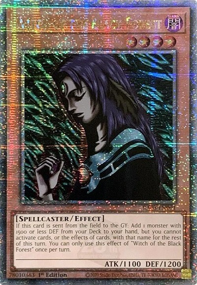 If this card is sent from the field to the GY: Add 1 monster with 1500 or less DEF from your Deck to your hand, but you cannot activate cards, or the effects of cards, with that name for the rest of this turn. You can only use this effect of ‘Witch of the Black Forest’ once per turn.