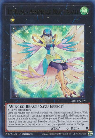 2 or more Level 1 monstersThis card gains 200 ATK for each Xyz Material attached to it. This card can attack directly. While this card has Xyz Material, it can attack a number of times each Battle Phase, up to the number of Xyz Materials attached to it. Once per turn, during either player’s turn: You can detach 1 Xyz Material from this card; until the end of this turn, ‘Lyrilusc’ monsters you control cannot be destroyed by battle or card effects, also you take no battle damage.