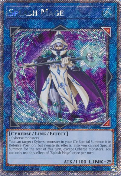 2 Cyberse monstersYou can target 1 Cyberse monster in your GY; Special Summon it in Defense Position, but negate its effects, also you cannot Special Summon monsters for the rest of this turn, except Cyberse monsters. You can only use this effect of ‘Splash Mage’ once per turn.