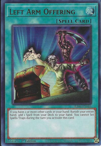 If you have 2 or more other cards in your hand: Banish your entire hand; add 1 Spell from your Deck to your hand. You cannot Set Spells/Traps during the turn you activate this card.