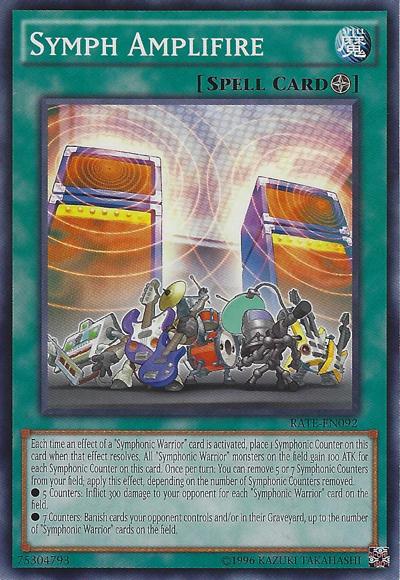 Each time an effect of a ‘Symphonic Warrior’ card is activated, place 1 Symphonic Counter on this card when that effect resolves. All ‘Symphonic Warrior’ monsters on the field gain 100 ATK for each Symphonic Counter on this card. Once per turn: You can remove 5 or 7 Symphonic Counters from your field; apply this effect, depending on the number of Symphonic Counters removed.● 5 Counters: Inflict 300 damage to your opponent for each ‘Symphonic Warrior’ card on the field.● 7 Counters: Banish cards your opponent controls and/or in their Graveyard, up to the number of ‘Symphonic Warrior’ cards on the field.