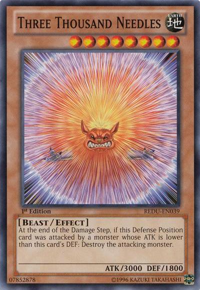 At the end of the Damage Step, if this Defense Position card was attacked by a monster whose ATK is lower than this card’s DEF: Destroy the attacking monster.