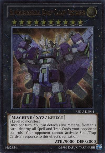 3 Level 10 monstersOnce per turn: You can detach 1 Xyz Material from this card; destroy all Spell and Trap Cards your opponent controls. Your opponent cannot activate Spell/Trap Cards in response to this effect’s activation.