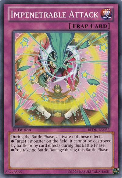 During the Battle Phase, activate 1 of these effects.● Target 1 monster on the field; it cannot be destroyed by battle or by card effects during this Battle Phase.● You take no battle damage during this Battle Phase.