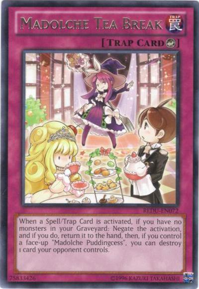 When a Spell/Trap Card is activated, if you have no monsters in your Graveyard: Negate the activation, and if you do, return it to the hand, then, if you control a face-up ‘Madolche Puddingcess’, you can destroy 1 card your opponent controls.