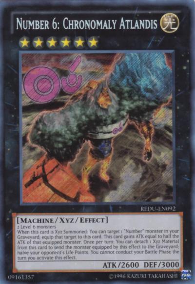 2 Level 6 monstersWhen this card is Xyz Summoned: You can target 1 ‘Number’ monster in your Graveyard; equip that target to this card. This card gains ATK equal to half the ATK of that equipped monster. Once per turn: You can detach 1 Xyz Material from this card, then send the monster equipped by this effect to the Graveyard; halve your opponent’s Life Points. You cannot conduct your Battle Phase the turn you activate this effect.