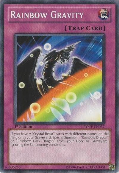If you have 7 ‘Crystal Beast’ cards with different names on the field or in your Graveyard: Special Summon 1 ‘Ultimate Crystal’ monster from your Deck or Graveyard, ignoring the Summoning conditions.