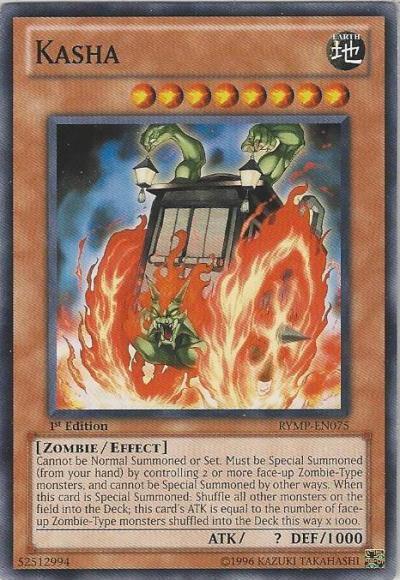 Cannot be Normal Summoned/Set. Must be Special Summoned (from your hand) by controlling 2 or more Zombie monsters. If this card is Special Summoned: Shuffle as many other monsters on the field as possible into the Deck, and if you do, this card’s ATK becomes 1000 x the number of face-up monsters shuffled into the Deck this way, whose original Type was Zombie.