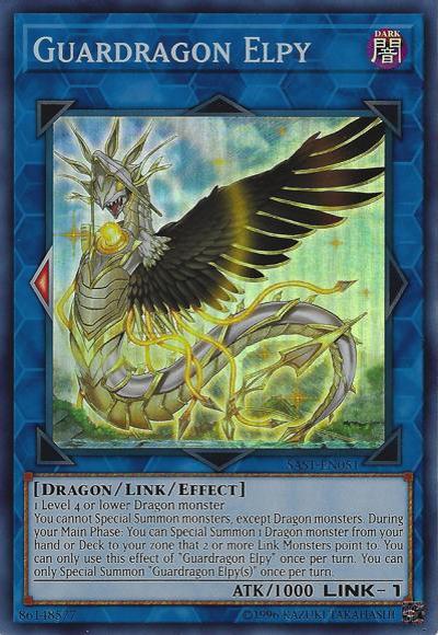 1 Level 4 or lower Dragon monsterYou cannot Special Summon monsters, except Dragon monsters. During your Main Phase: You can Special Summon 1 Dragon monster from your hand or Deck to your zone that 2 or more Link Monsters point to. You can only use this effect of ‘Guardragon Elpy’ once per turn. You can only Special Summon ‘Guardragon Elpy(s)’ once per turn.