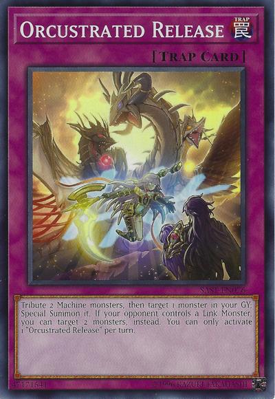 Tribute 2 Machine monsters, then target 1 monster in your GY; Special Summon it. If your opponent controls a Link Monster, you can target 2 monsters, instead. You can only activate 1 ‘Orcustrated Release’ per turn.