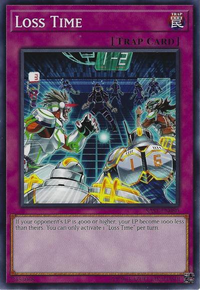 If your opponent’s LP is 4000 or higher, your LP become 1000 less than theirs. You can only activate 1 ‘Loss Time’ per turn.