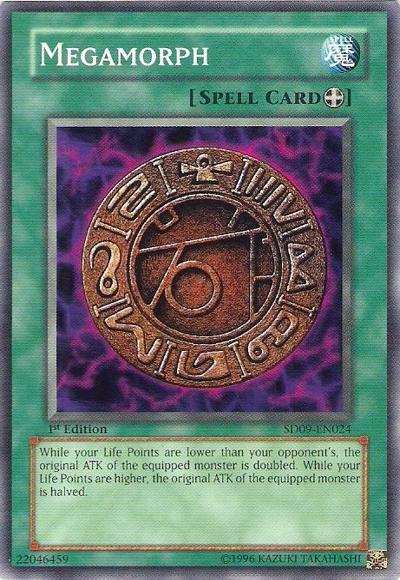 While your LP is lower than your opponent’s, the equipped monster’s ATK becomes double its original ATK. While your LP is higher, the equipped monster’s ATK becomes half its original ATK.
