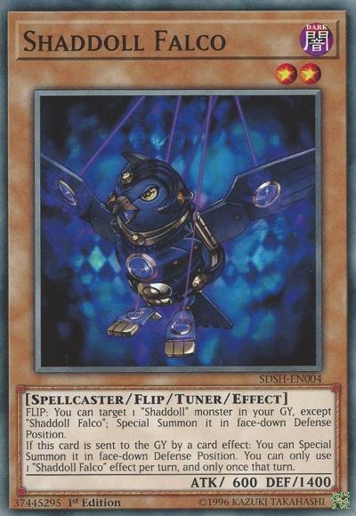 FLIP: You can target 1 ‘Shaddoll’ monster in your GY, except ‘Shaddoll Falco’; Special Summon it in face-down Defense Position.If this card is sent to the GY by a card effect: You can Special Summon it in face-down Defense Position. You can only use 1 ‘Shaddoll Falco’ effect per turn, and only once that turn.