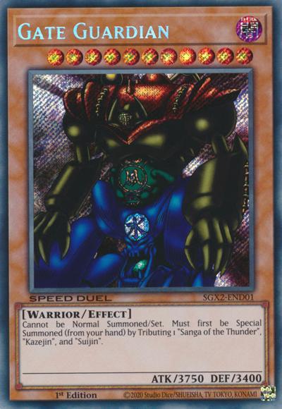 Cannot be Normal Summoned/Set. Must first be Special Summoned (from your hand) by Tributing 1 ‘Sanga of the Thunder’, ‘Kazejin’, and ‘Suijin’.