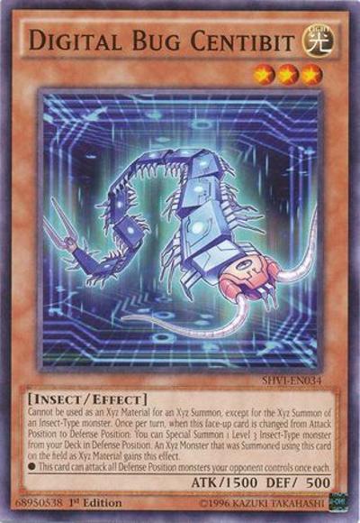 Cannot be used as an Xyz Material for an Xyz Summon, except for the Xyz Summon of an Insect-Type monster. Once per turn, when this face-up card is changed from Attack Position to Defense Position: You can Special Summon 1 Level 3 Insect-Type monster from your Deck in Defense Position. An Xyz Monster that was Summoned using this card on the field as Xyz Material gains this effect.● This card can attack all Defense Position monsters your opponent controls once each.