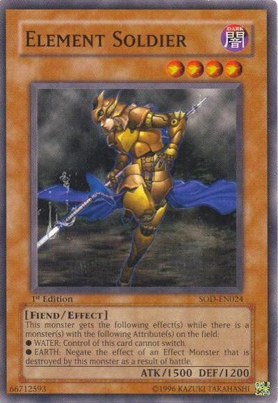 This monster gets the following effect(s) while there is a monster(s) with the following Attribute(s) on the field: ● WATER: Control of this card cannot switch. ● EARTH: Negate the effect of an Effect Monster that this card destroyed by battle.