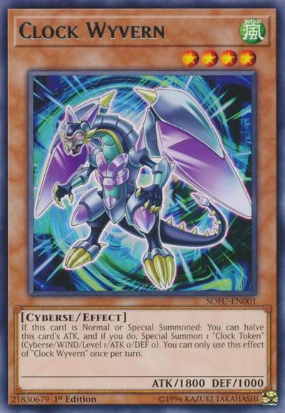 If this card is Normal or Special Summoned: You can halve this card’s ATK, and if you do, Special Summon 1 ‘Clock Token’ (Cyberse/WIND/Level 1/ATK 0/DEF 0). You can only use this effect of ‘Clock Wyvern’ once per turn.