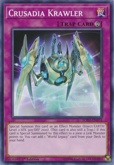 Special Summon this card as an Effect Monster (Insect/EARTH/Level 2/ATK 300/DEF 2100). (This card is also still a Trap.) If this card is Special Summoned by this effect to a zone a Link Monster points to: You can add 1 ‘World Legacy’ card from your Deck to your hand.