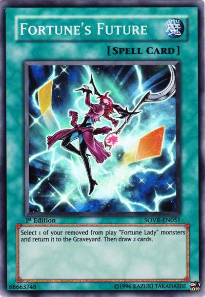 Target 1 of your banished ‘Fortune Lady’ monsters; return it to the GY, then draw 2 cards.