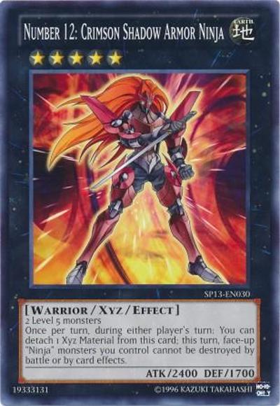 2 Level 5 monstersOnce per turn, during either player’s turn: You can detach 1 Xyz Material from this card; this turn, face-up ‘Ninja’ monsters you control cannot be destroyed by battle or by card effects.