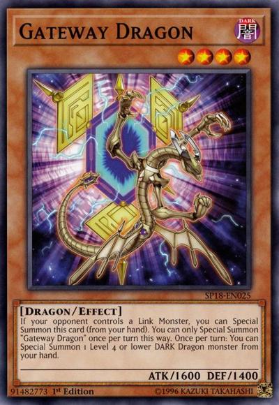 If your opponent controls a Link Monster, you can Special Summon this card (from your hand). You can only Special Summon ‘Gateway Dragon’ once per turn this way. Once per turn: You can Special Summon 1 Level 4 or lower DARK Dragon monster from your hand.