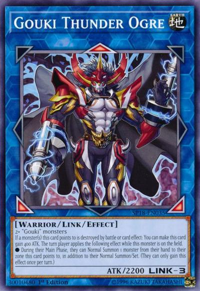2+ ‘Gouki’ monstersIf a monster(s) this card points to is destroyed by battle or card effect: You can make this card gain 400 ATK. The turn player applies the following effect while this monster is on the field.● During their Main Phase, they can Normal Summon 1 monster from their hand to their zone this card points to, in addition to their Normal Summon/Set. (They can only gain this effect once per turn.)