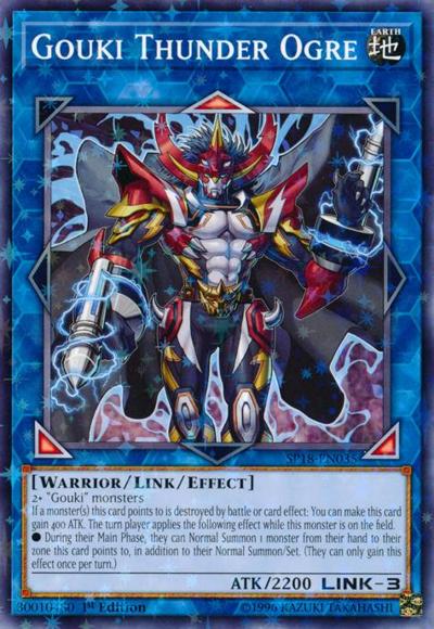 2+ ‘Gouki’ monstersIf a monster(s) this card points to is destroyed by battle or card effect: You can make this card gain 400 ATK. The turn player applies the following effect while this monster is on the field.● During their Main Phase, they can Normal Summon 1 monster from their hand to their zone this card points to, in addition to their Normal Summon/Set. (They can only gain this effect once per turn.)