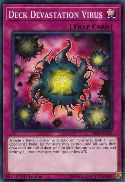 Tribute 1 DARK monster with 2000 or more ATK; look at your opponent’s hand, all monsters they control, and all cards they draw until the end of their 3rd turn after this card’s activation, and destroy all those monsters with 1500 or less ATK.