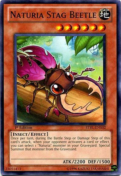 Once per turn, during the Battle Step or Damage Step of this card’s attack, when your opponent activates a card or effect, you can select 1 ‘Naturia’ monster in your Graveyard. Special Summon that monster from the Graveyard.