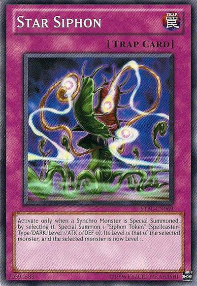 When a Synchro Monster(s) is Special Summoned: Target 1 of them; Special Summon 1 ‘Siphon Token’ (Spellcaster-Type/DARK/Level 1/ATK 0/DEF 0). Its Level becomes that monster’s current Level and that monster’s Level becomes 1.