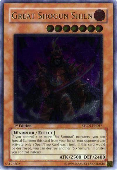If you control 2 or more face-up ‘Six Samurai’ monsters, you can Special Summon this card (from your hand). Your opponent can only activate 1 Spell/Trap Card each turn. If this card would be destroyed, you can destroy a face-up ‘Six Samurai’ monster you control instead.