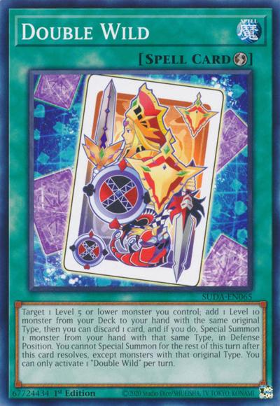 Target 1 Level 5 or lower monster you control; add 1 Level 10 monster from your Deck to your hand with the same original Type, then you can discard 1 card, and if you do, Special Summon 1 monster from your hand with that same Type, in Defense Position. You cannot Special Summon for the rest of this turn after this card resolves, except monsters with that original Type. You can only activate 1 ‘Double Wild’ per turn.