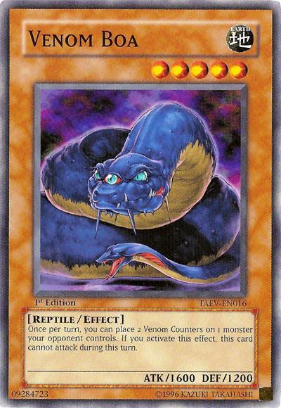Once per turn, you can place 2 Venom Counters on 1 monster your opponent controls. If you activate this effect, this card cannot attack during this turn.