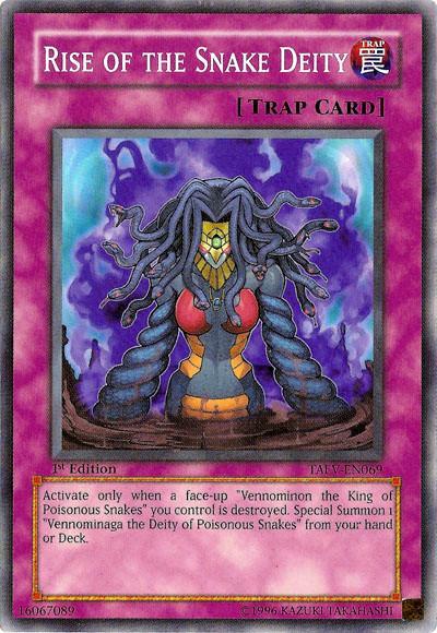 When a face-up ‘Vennominon the King of Poisonous Snakes’ you control is destroyed, except by battle: Special Summon 1 ‘Vennominaga the Deity of Poisonous Snakes’ from your hand or Deck.