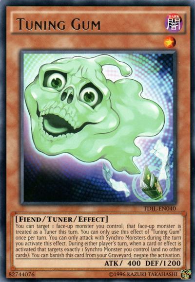 You can target 1 face-up monster you control; that face-up monster is treated as a Tuner this turn. You can only use this effect of ‘Tuning Gum’ once per turn. You can only attack with Synchro Monsters during the turn you activate this effect. During either player’s turn, when a card or effect is activated that targets exactly 1 Synchro Monster you control (and no other cards): You can banish this card from your Graveyard; negate the activation.