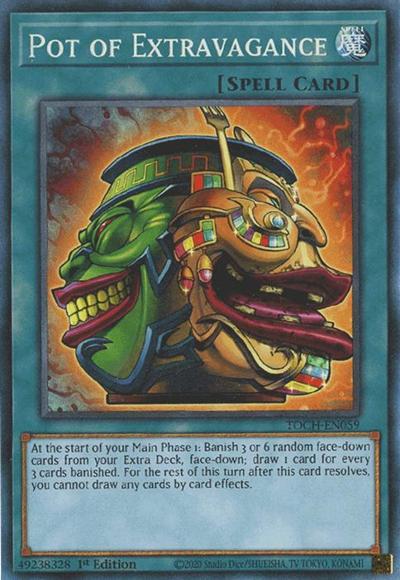 At the start of your Main Phase 1: Banish 3 or 6 random face-down cards from your Extra Deck, face-down; draw 1 card for every 3 cards banished. For the rest of this turn after this card resolves, you cannot draw any cards by card effects.